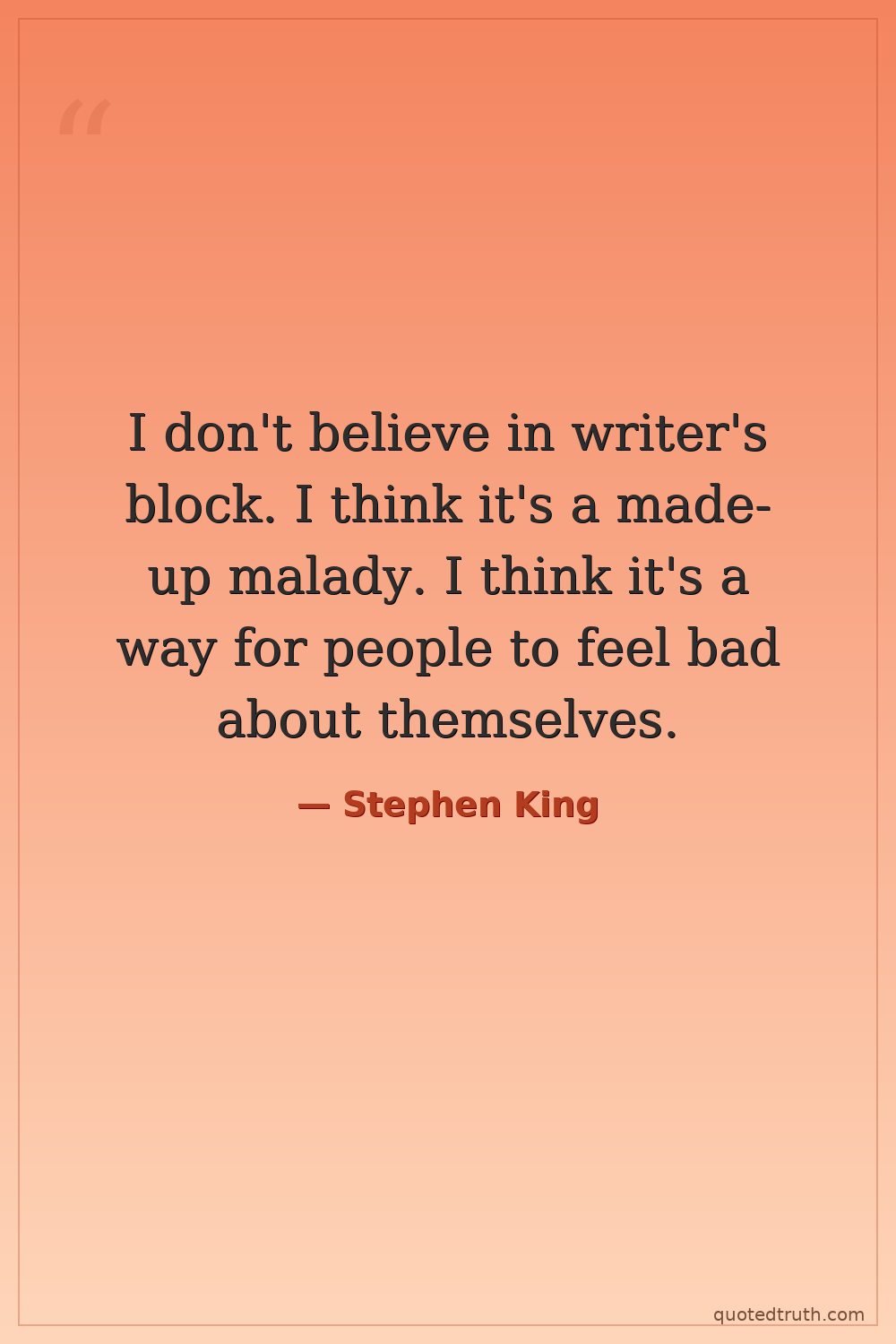 I don't believe in writer's block. I think it's a made-up malady. I think it's a way for people to feel bad about themselves.