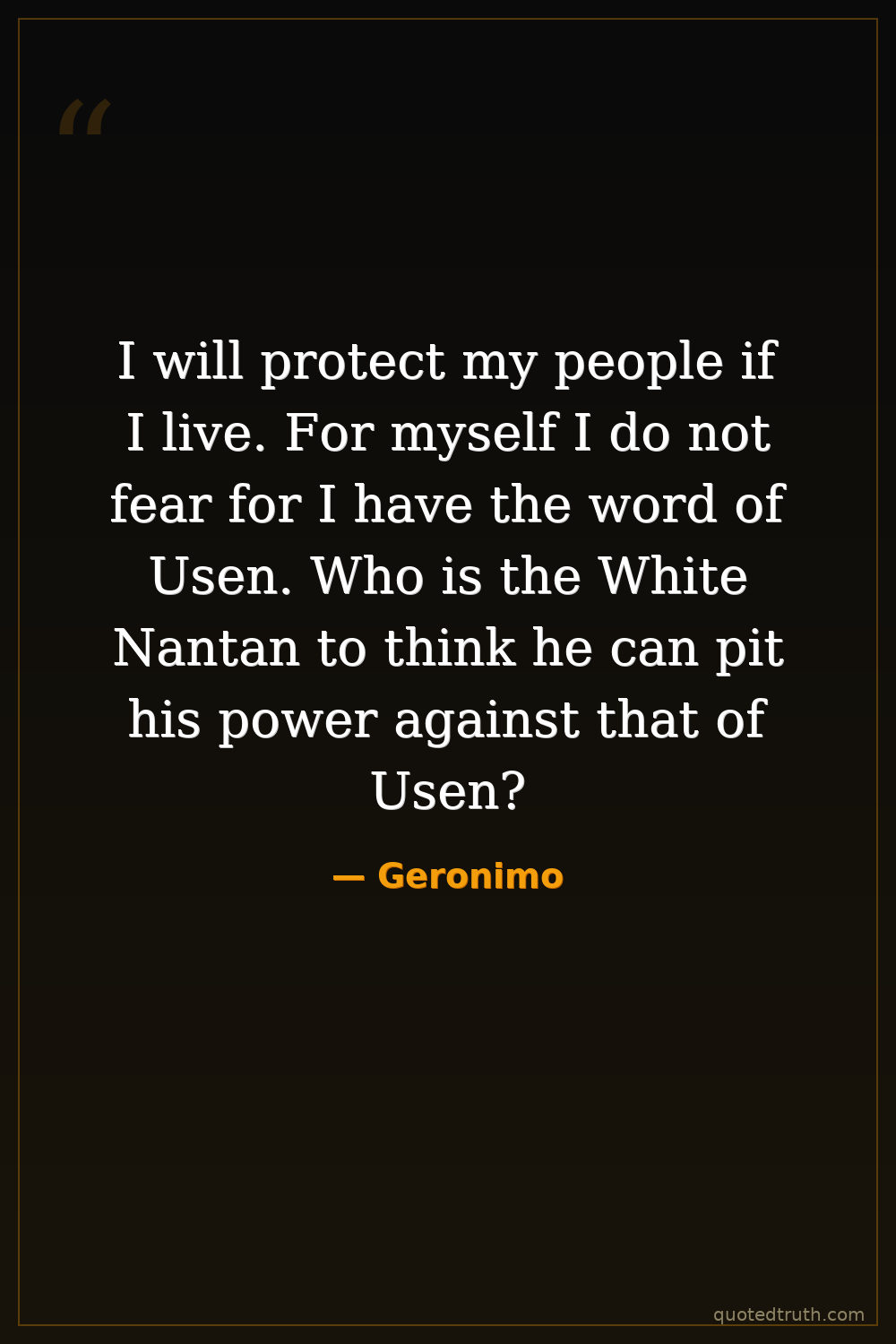 I will protect my people if I live. For myself I do not fear for I have the word of Usen. Who is the White Nantan to think he can pit his power against that of Usen?