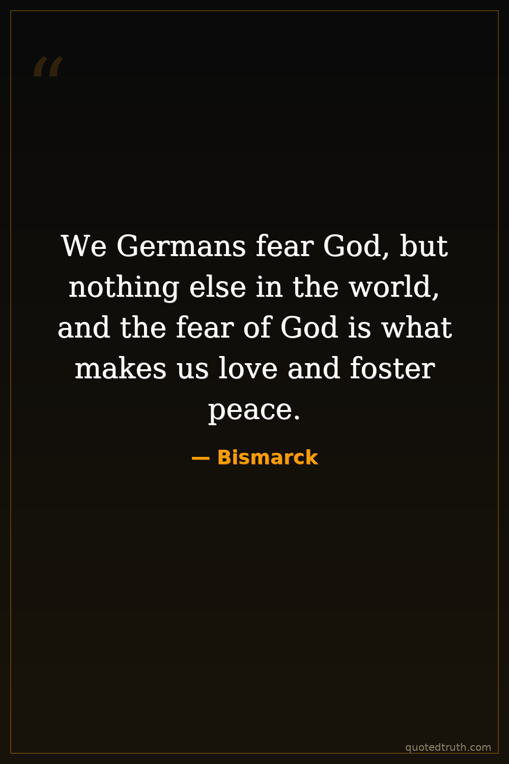 We Germans fear God, but nothing else in the world, and the fear of God is what makes us love and foster peace.