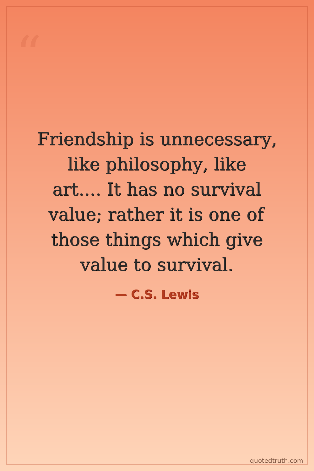 Friendship is unnecessary, like philosophy, like art.... It has no survival value; rather it is one of those things which give value to survival.
