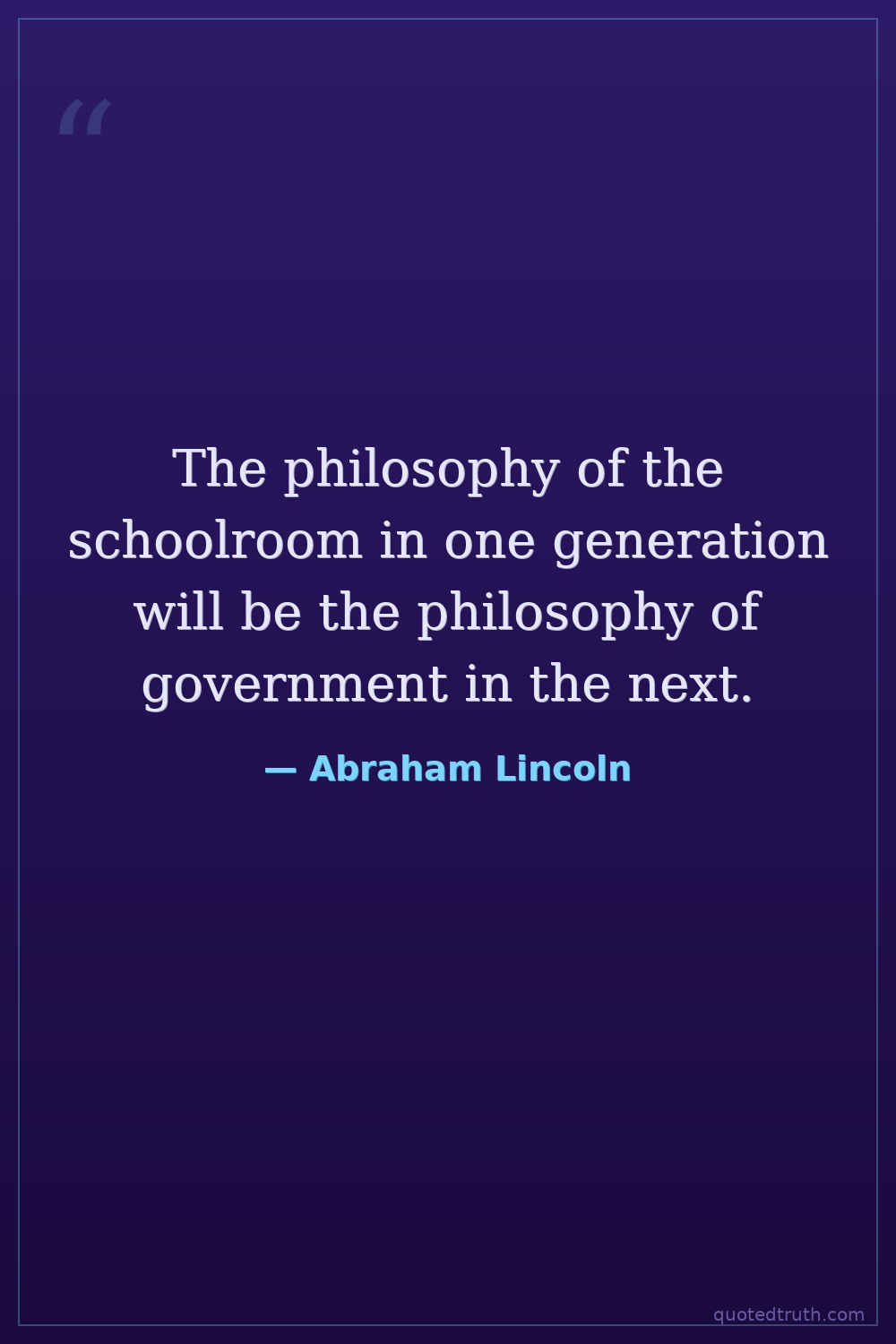 The philosophy of the schoolroom in one generation will be the philosophy of government in the next.
