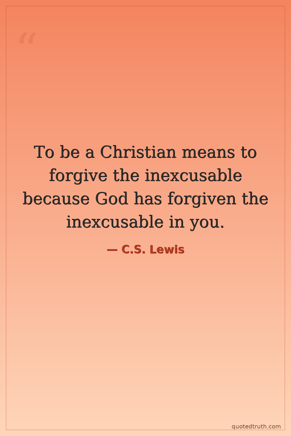 To be a Christian means to forgive the inexcusable because God has forgiven the inexcusable in you.