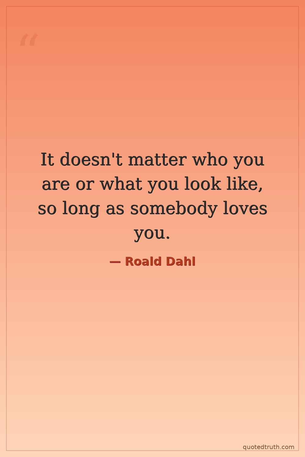 It doesn't matter who you are or what you look like, so long as somebody loves you.