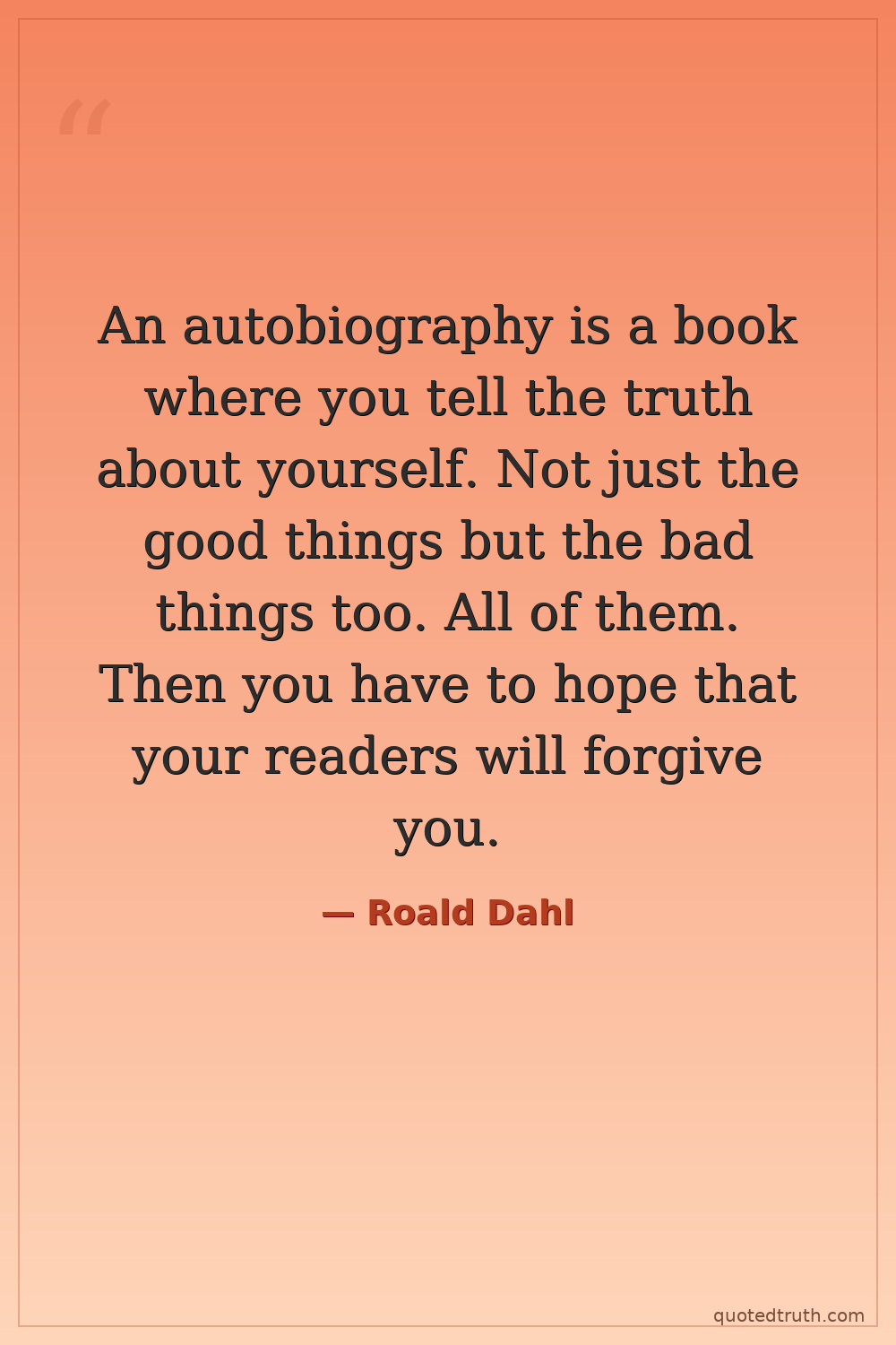 An autobiography is a book where you tell the truth about yourself. Not just the good things but the bad things too. All of them. Then you have to hope that your readers will forgive you.