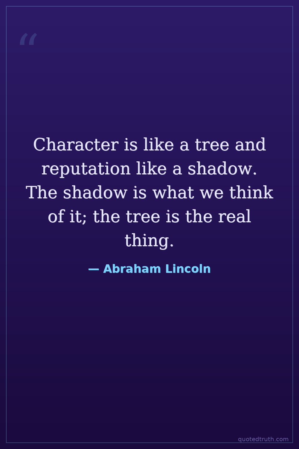 Character is like a tree and reputation like a shadow. The shadow is what we think of it; the tree is the real thing.