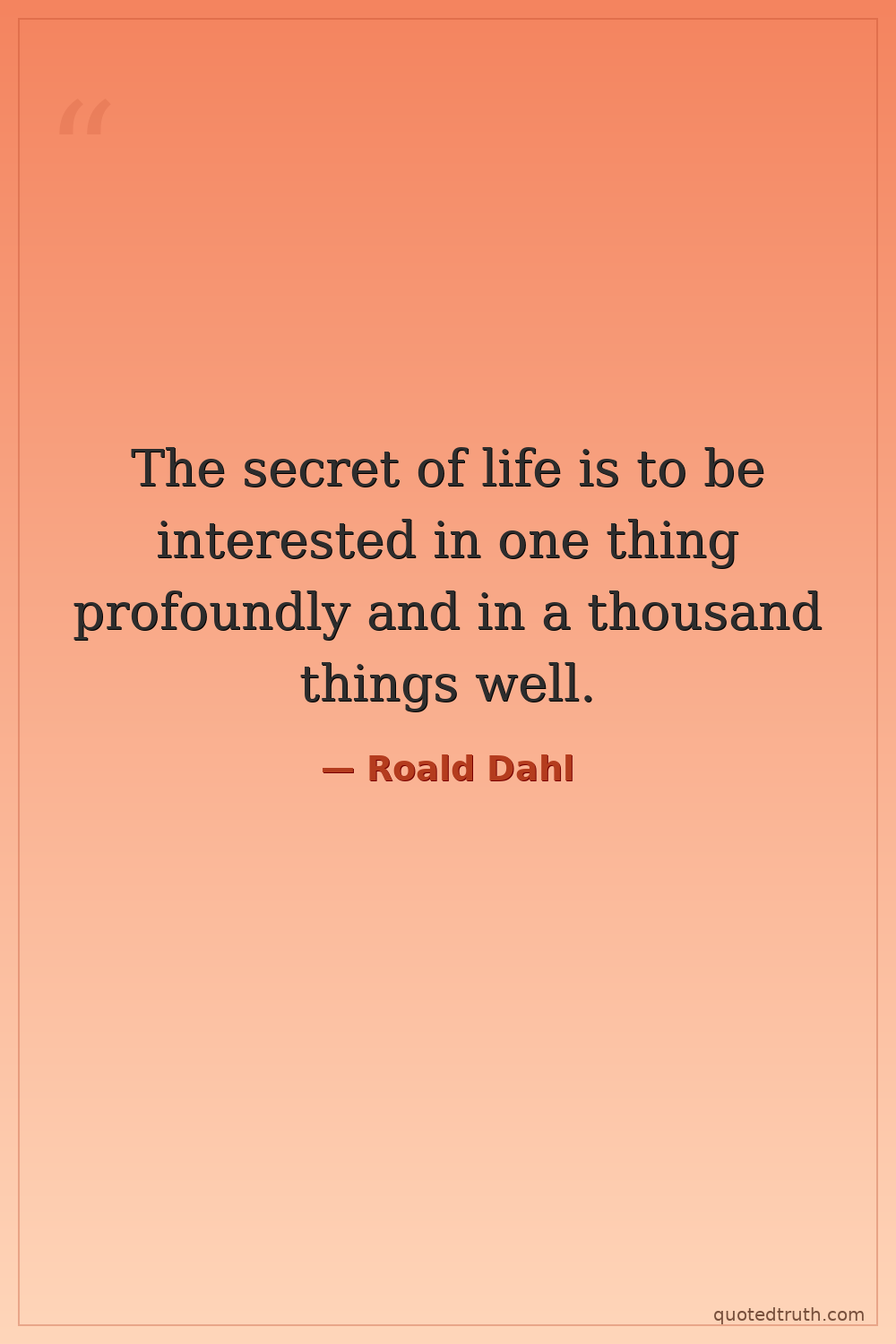 The secret of life is to be interested in one thing profoundly and in a thousand things well.