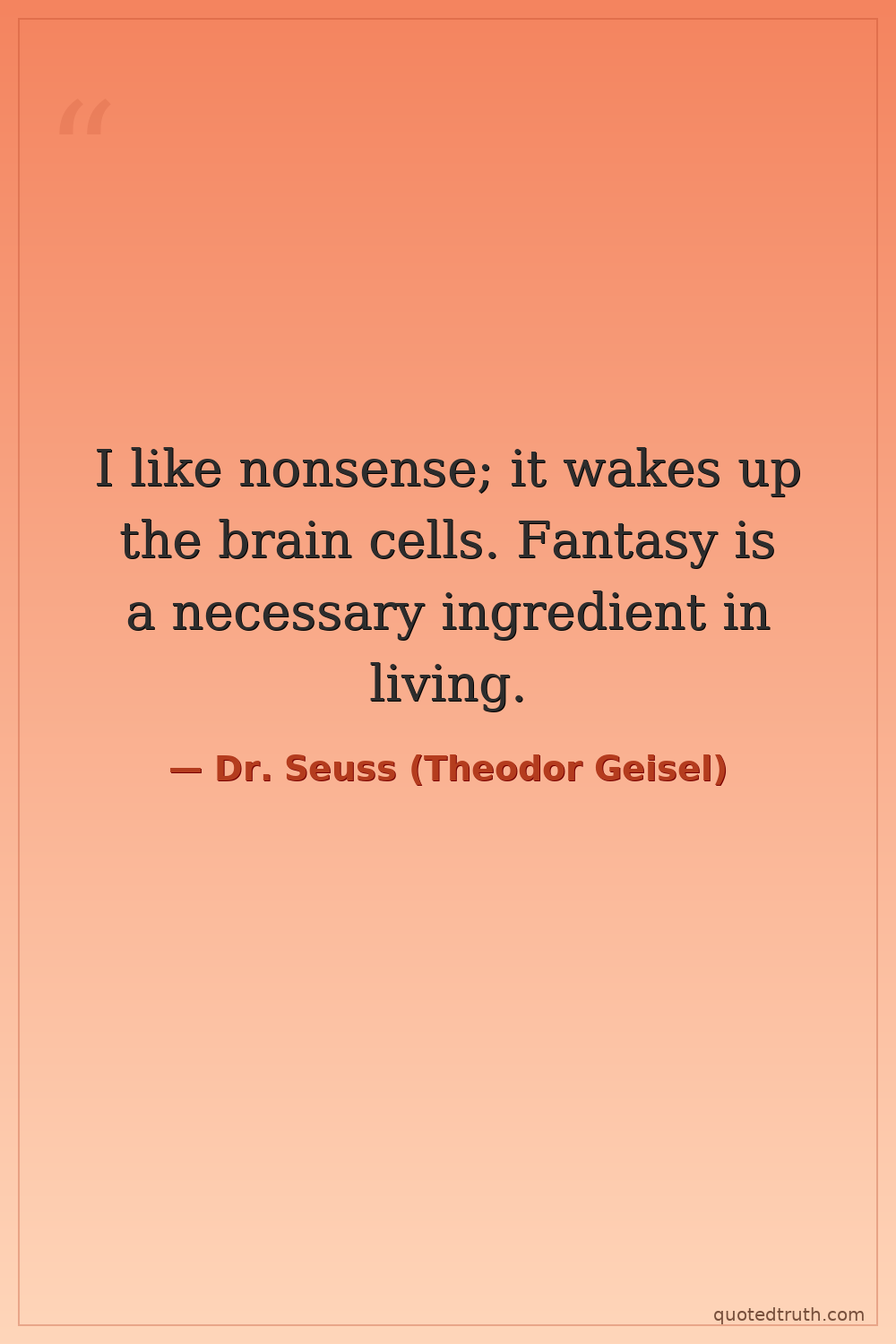 I like nonsense; it wakes up the brain cells. Fantasy is a necessary ingredient in living.