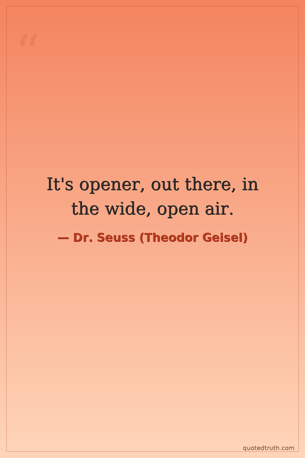 It's opener, out there, in the wide, open air.