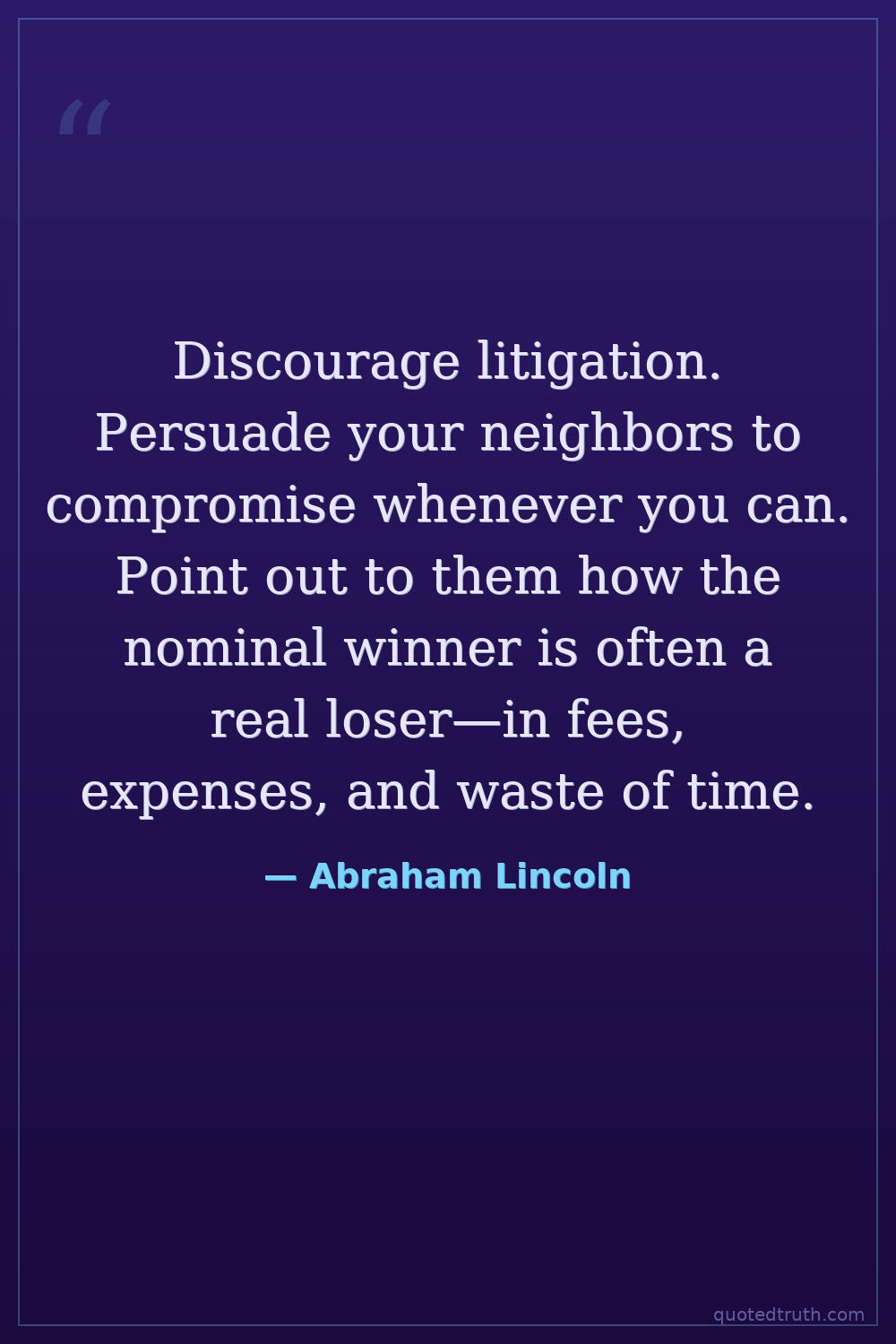 Discourage litigation. Persuade your neighbors to compromise whenever you can. Point out to them how the nominal winner is often a real loser—in fees, expenses, and waste of time.