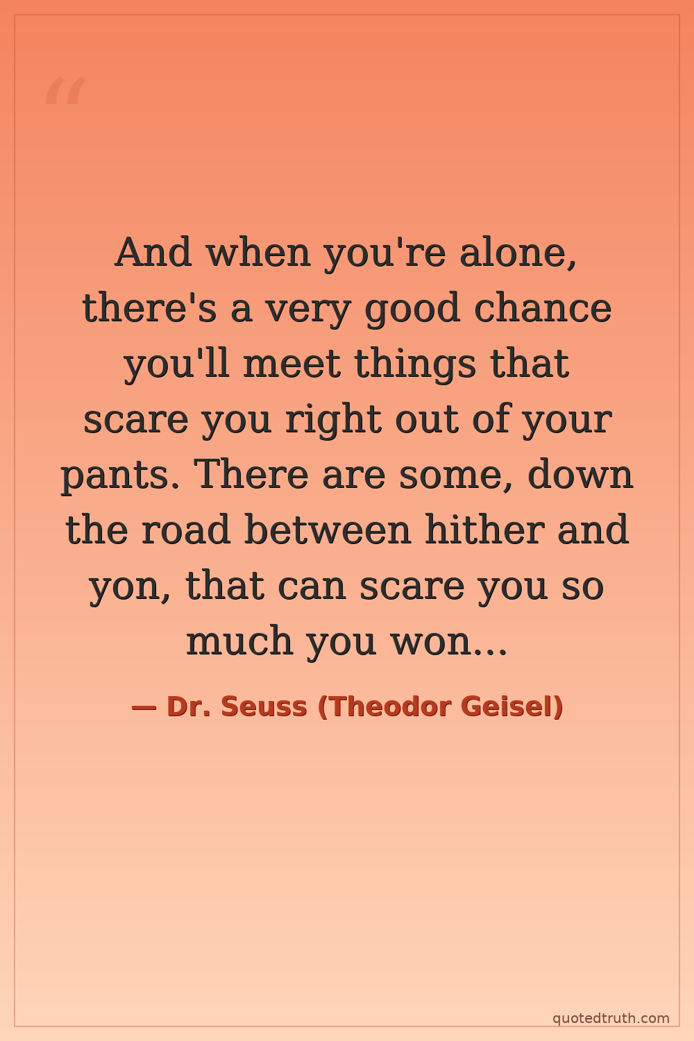 And when you're alone, there's a very good chance you'll meet things that scare you right out of your pants. There are some, down the road between hither and yon, that can scare you so much you won't want to go on.