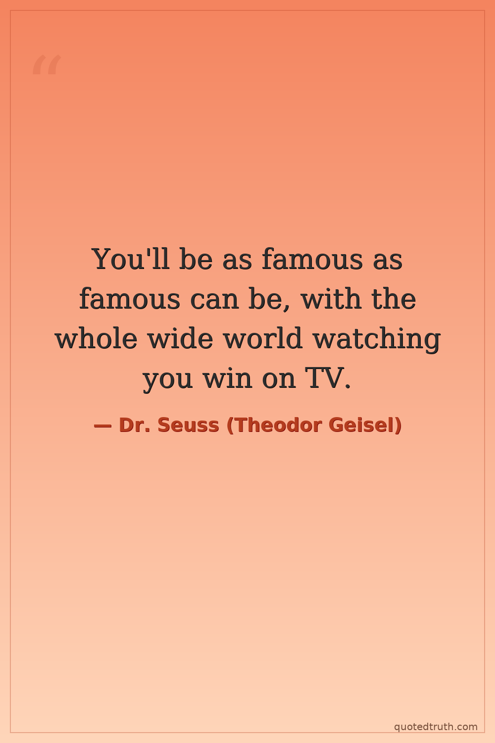 You'll be as famous as famous can be, with the whole wide world watching you win on TV.