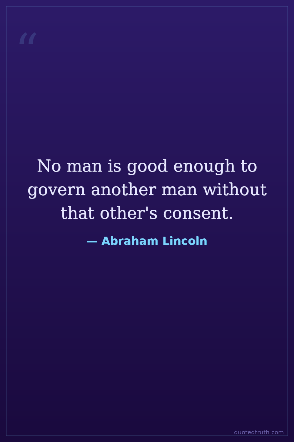 No man is good enough to govern another man without that other's consent.