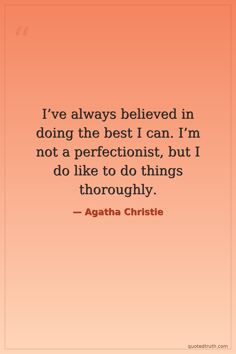 I’ve always believed in doing the best I can. I’m not a perfectionist, but I do like to do things thoroughly.