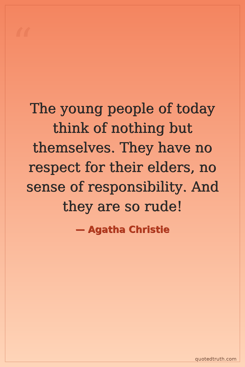 The young people of today think of nothing but themselves. They have no respect for their elders, no sense of responsibility. And they are so rude!