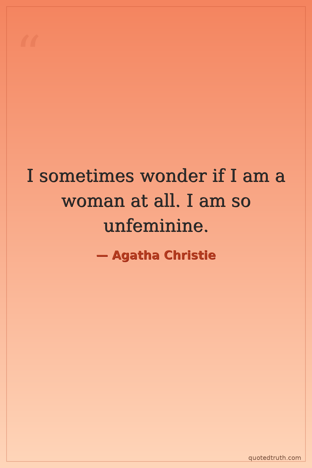 I sometimes wonder if I am a woman at all. I am so unfeminine.