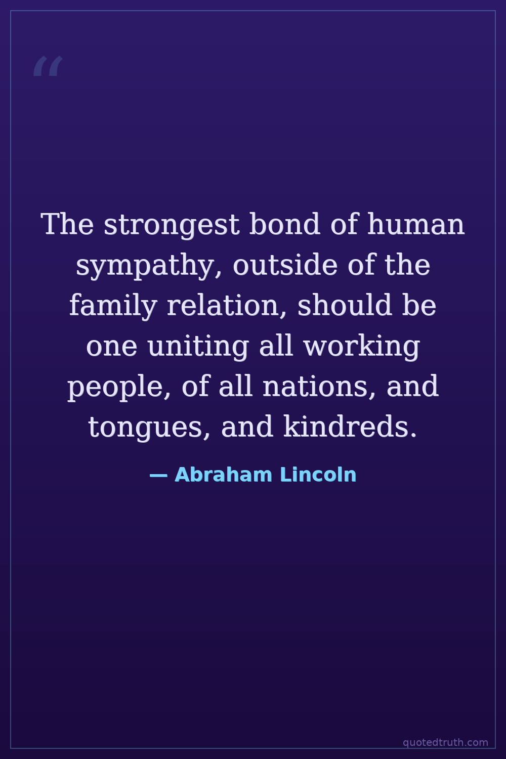 The strongest bond of human sympathy, outside of the family relation, should be one uniting all working people, of all nations, and tongues, and kindreds.