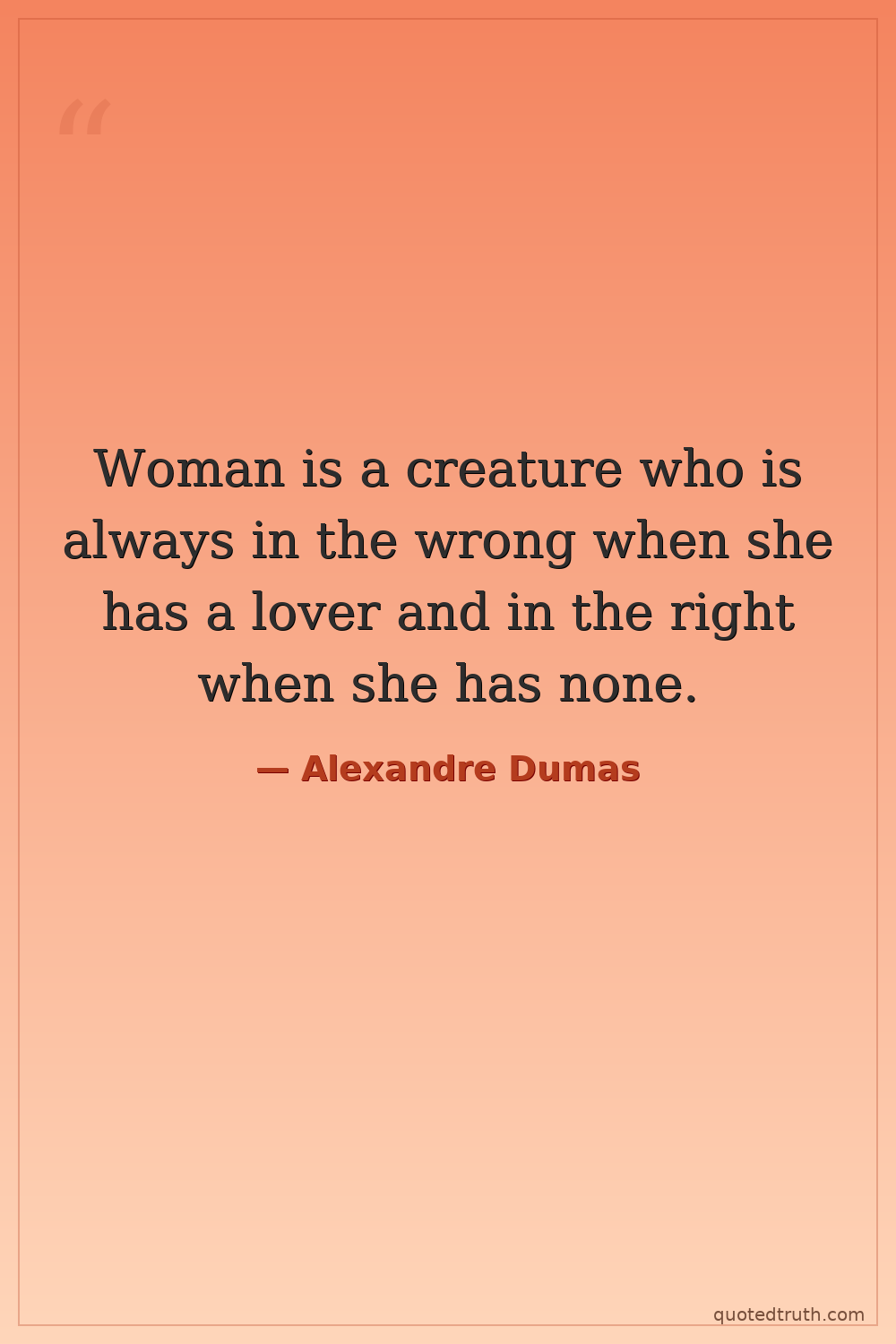 Woman is a creature who is always in the wrong when she has a lover and in the right when she has none.