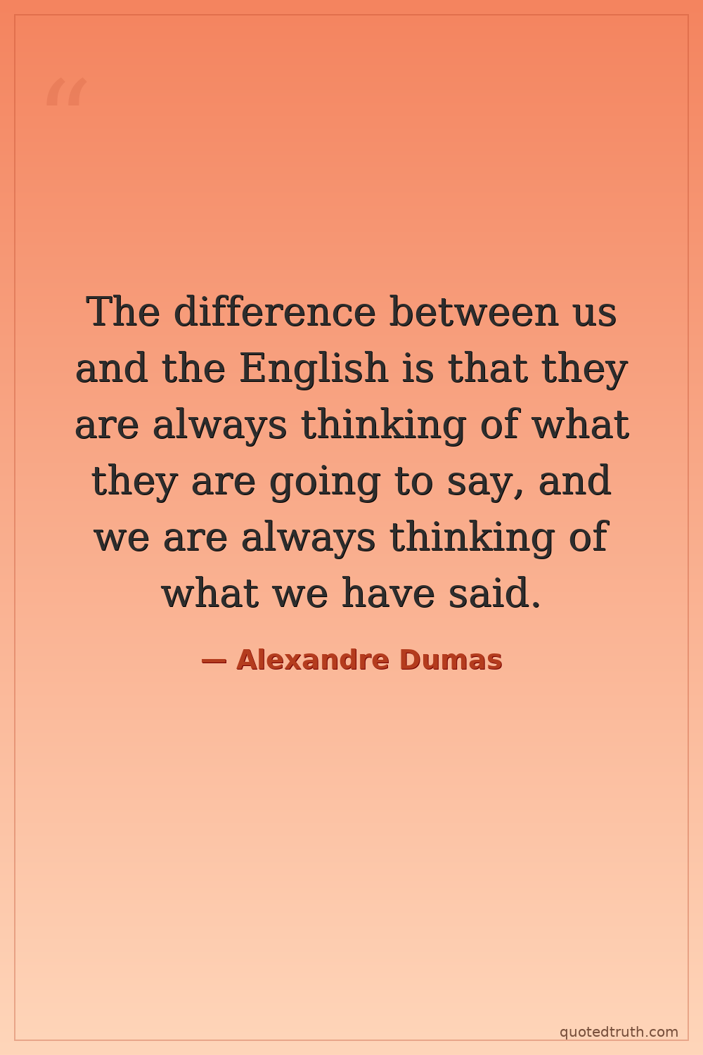 The difference between us and the English is that they are always thinking of what they are going to say, and we are always thinking of what we have said.