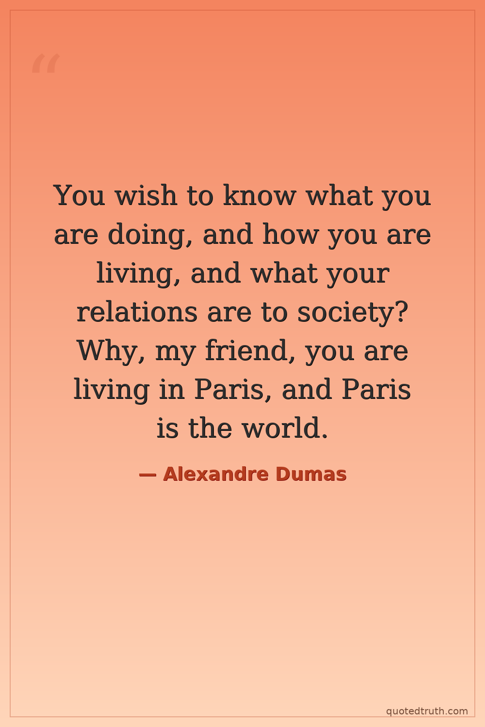 You wish to know what you are doing, and how you are living, and what your relations are to society? Why, my friend, you are living in Paris, and Paris is the world.