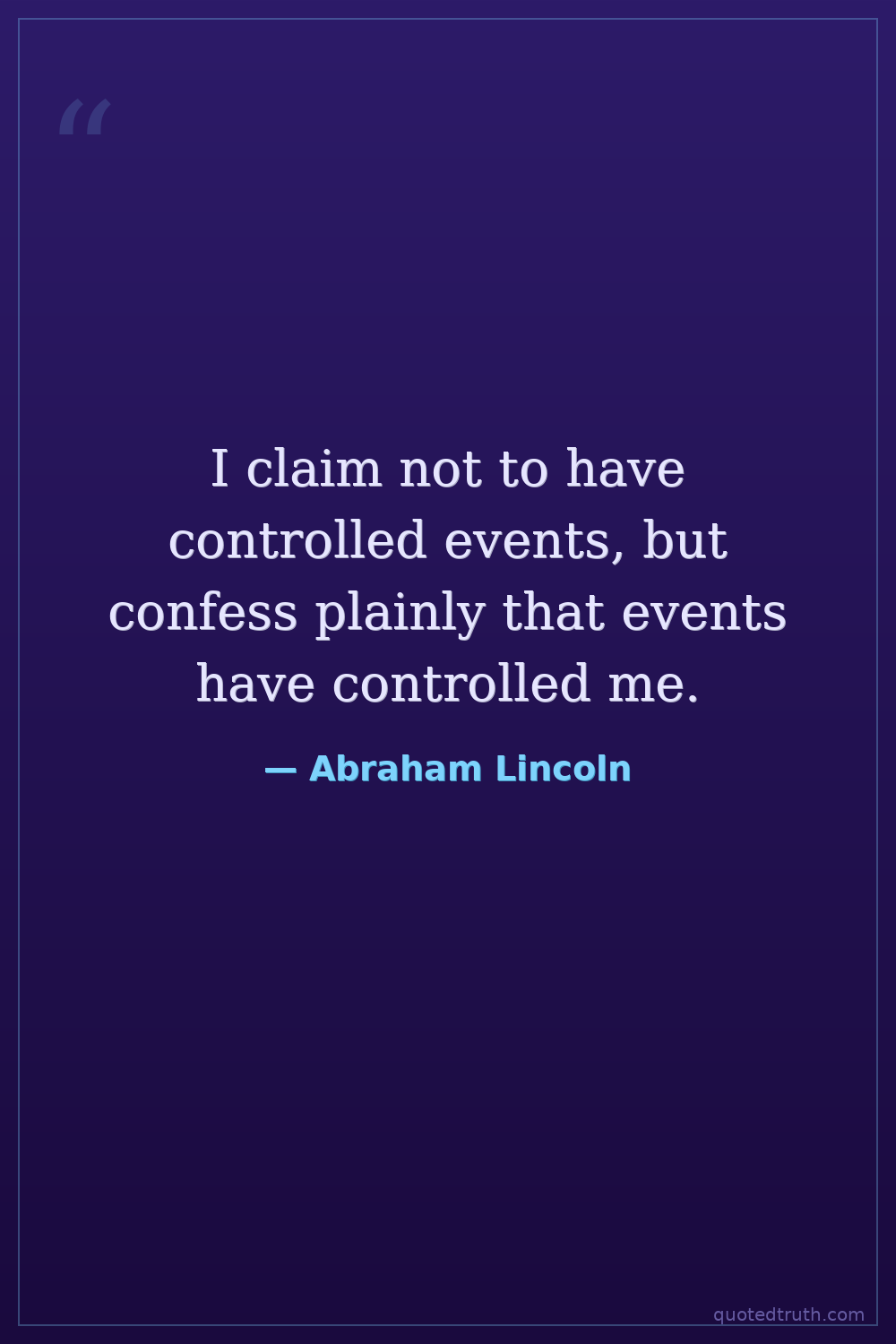I claim not to have controlled events, but confess plainly that events have controlled me.