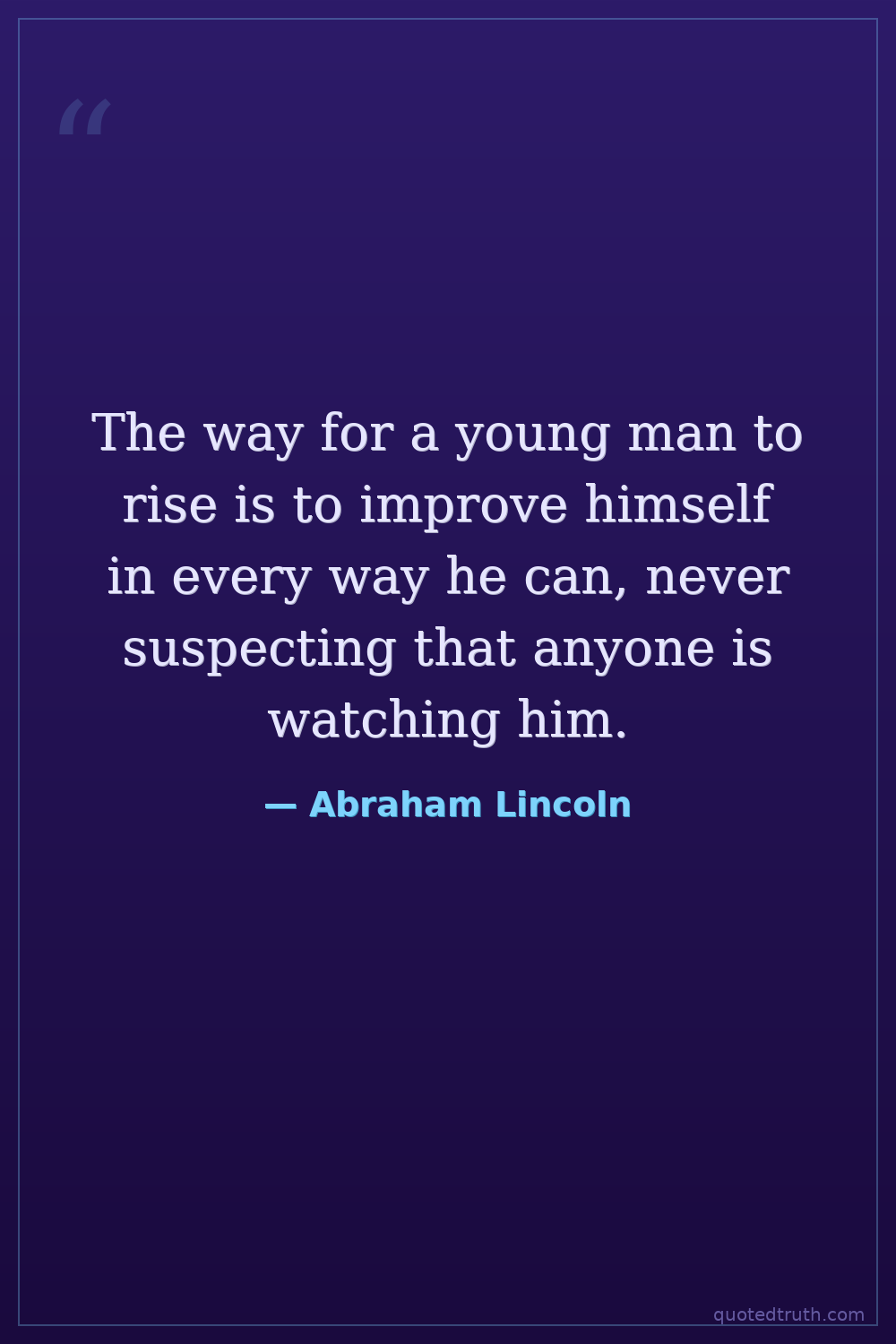 The way for a young man to rise is to improve himself in every way he can, never suspecting that anyone is watching him.