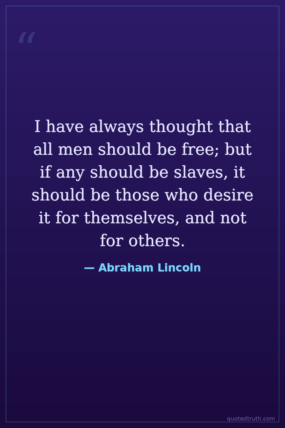 I have always thought that all men should be free; but if any should be slaves, it should be those who desire it for themselves, and not for others.