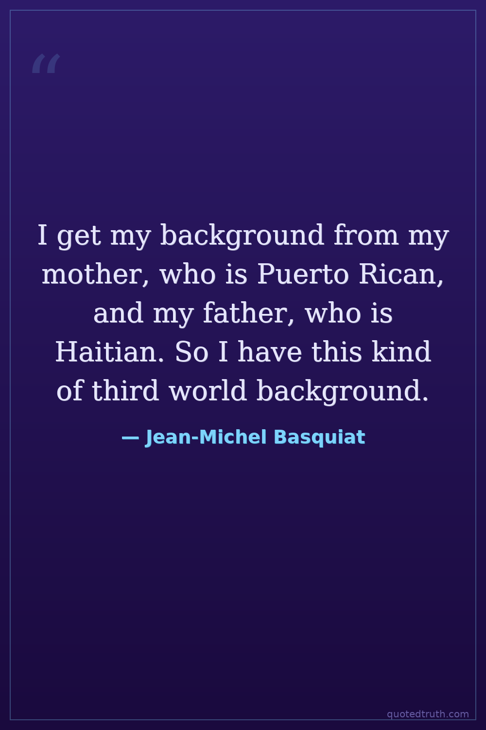 I get my background from my mother, who is Puerto Rican, and my father, who is Haitian. So I have this kind of third world background.