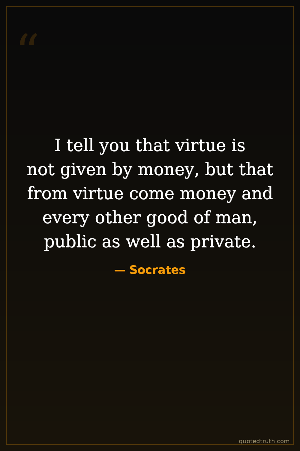 I tell you that virtue is not given by money, but that from virtue come money and every other good of man, public as well as private.