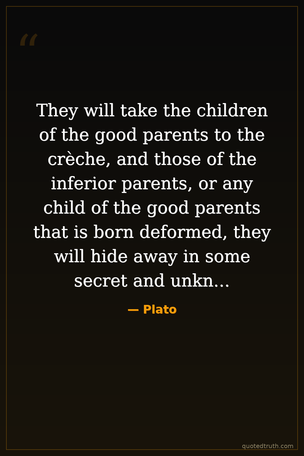 They will take the children of the good parents to the crèche, and those of the inferior parents, or any child of the good parents that is born deformed, they will hide away in some secret and unknown place, as they should.
