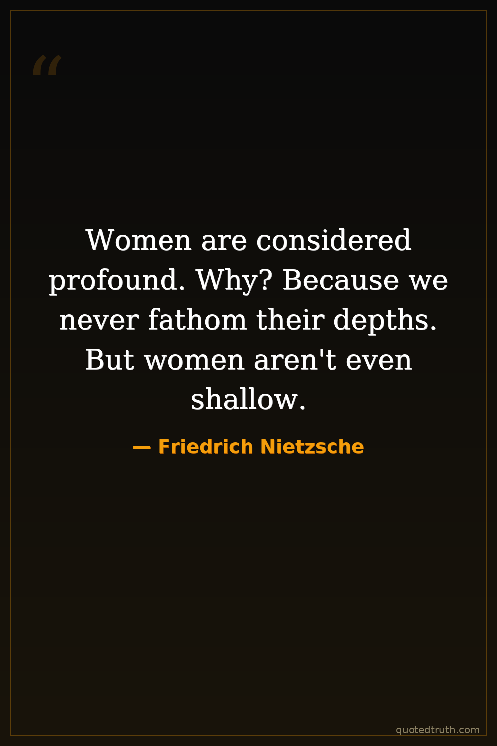 Women are considered profound. Why? Because we never fathom their depths. But women aren't even shallow.