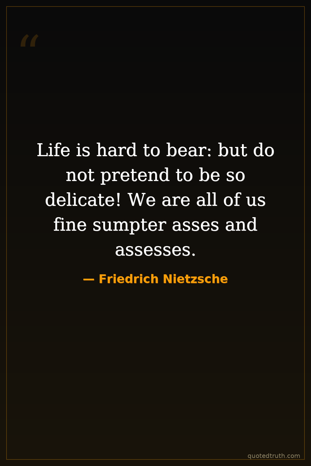 Life is hard to bear: but do not pretend to be so delicate! We are all of us fine sumpter asses and assesses.