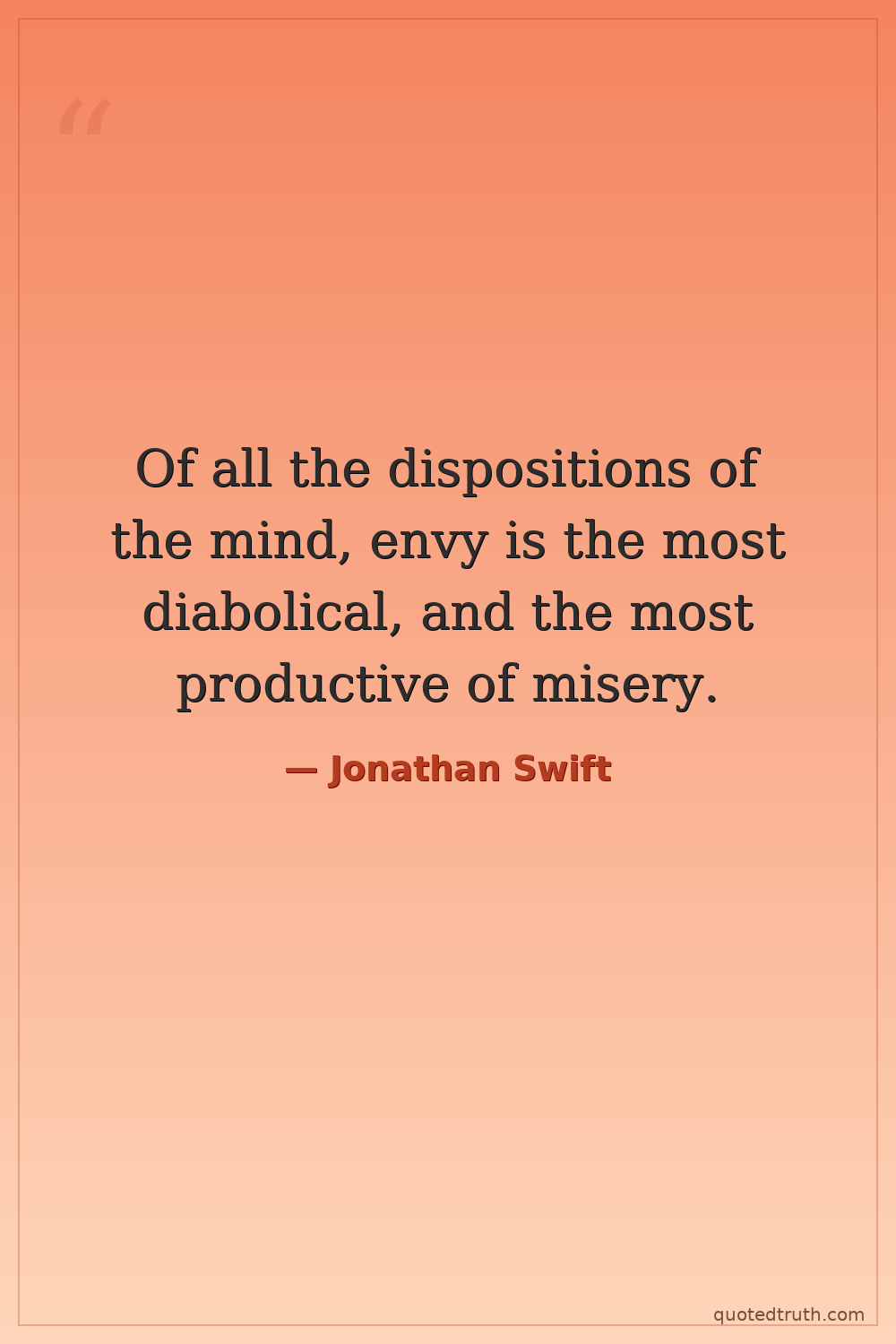 Of all the dispositions of the mind, envy is the most diabolical, and the most productive of misery.