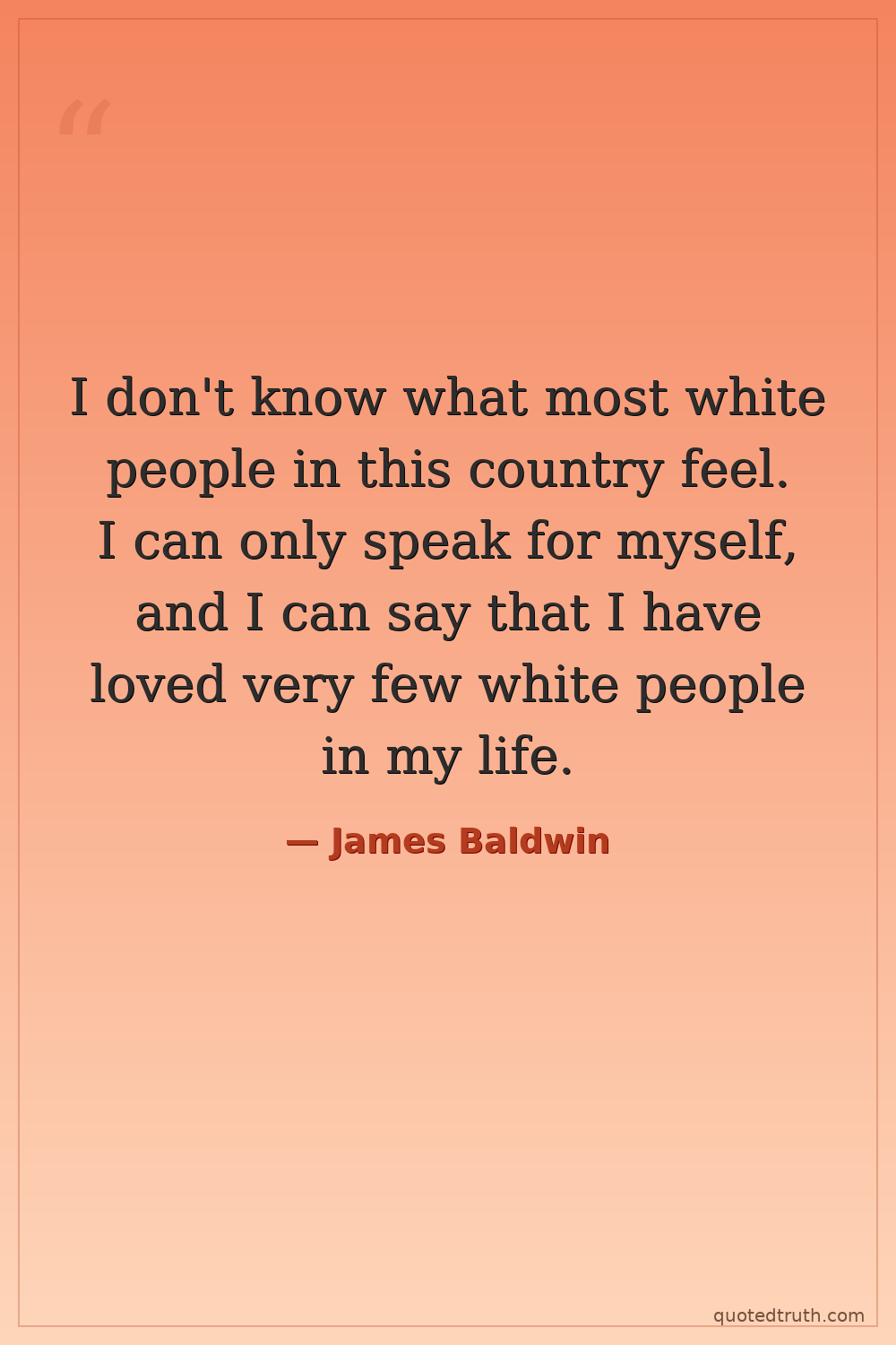 I don't know what most white people in this country feel. I can only speak for myself, and I can say that I have loved very few white people in my life.