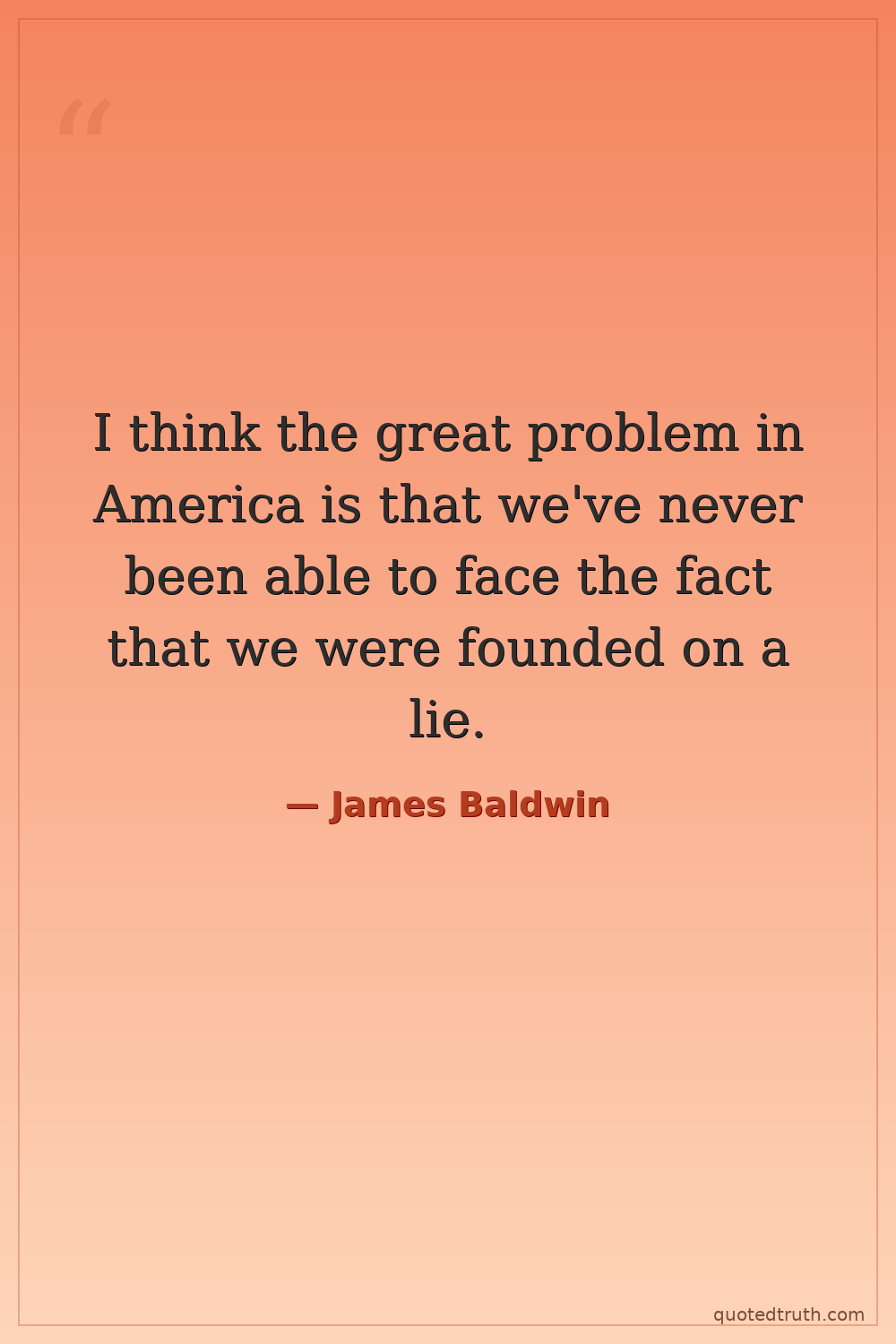 I think the great problem in America is that we've never been able to face the fact that we were founded on a lie.