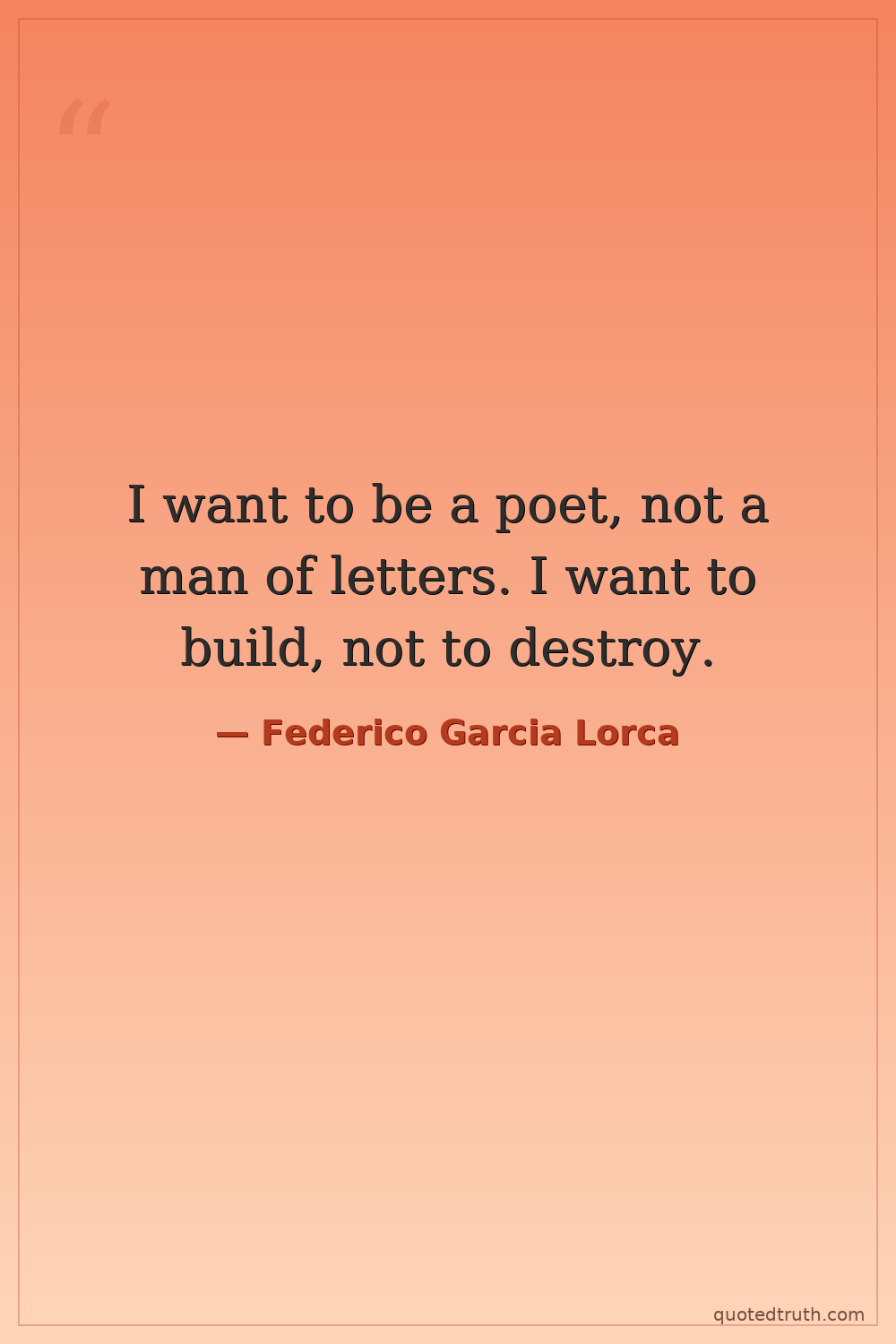 I want to be a poet, not a man of letters. I want to build, not to destroy.