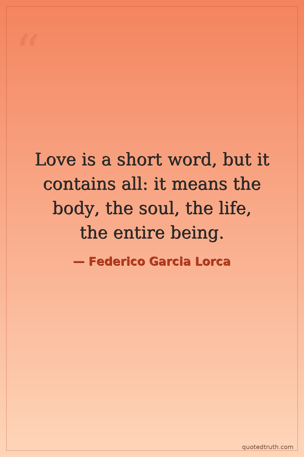 Love is a short word, but it contains all: it means the body, the soul, the life, the entire being.