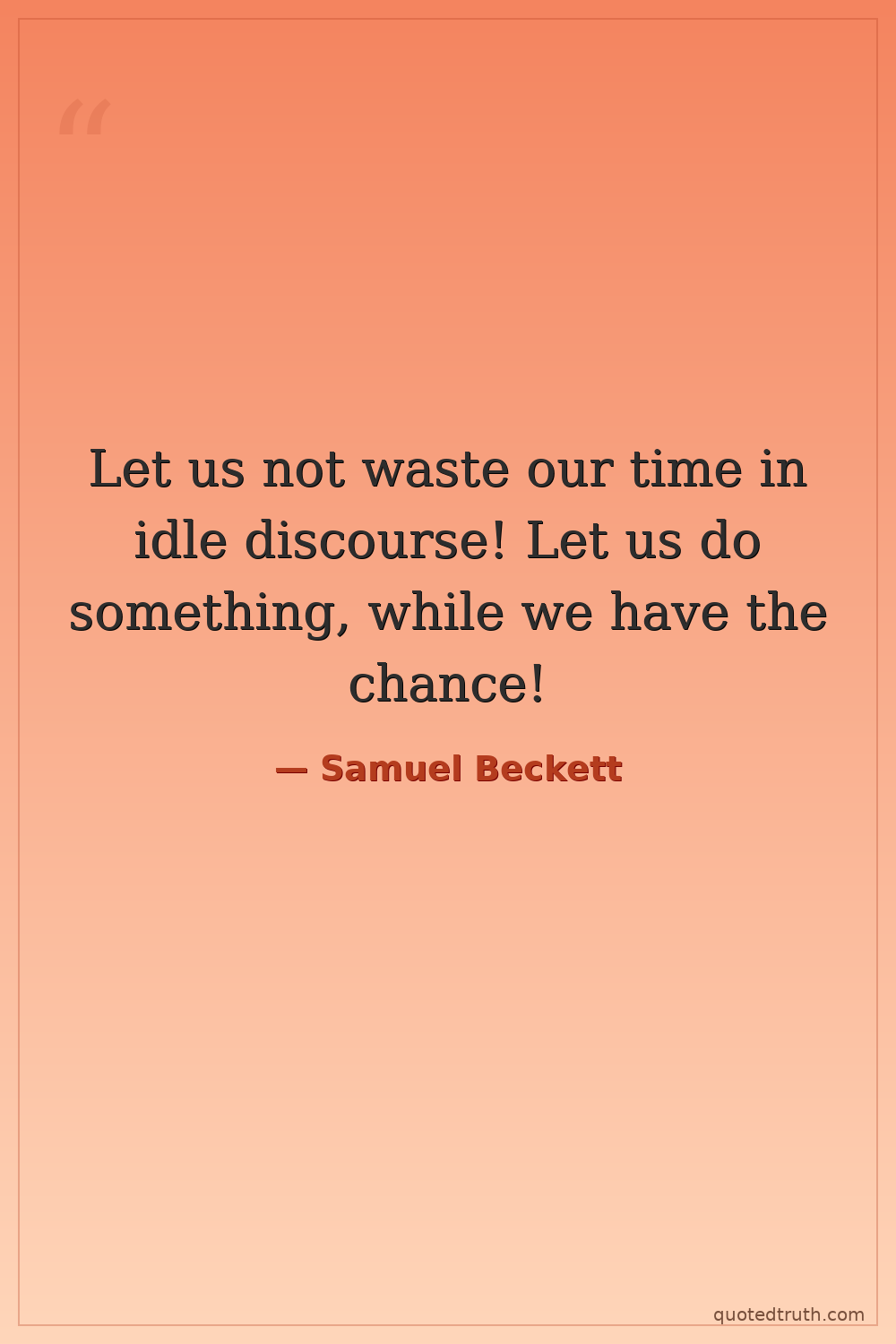 Let us not waste our time in idle discourse! Let us do something, while we have the chance!
