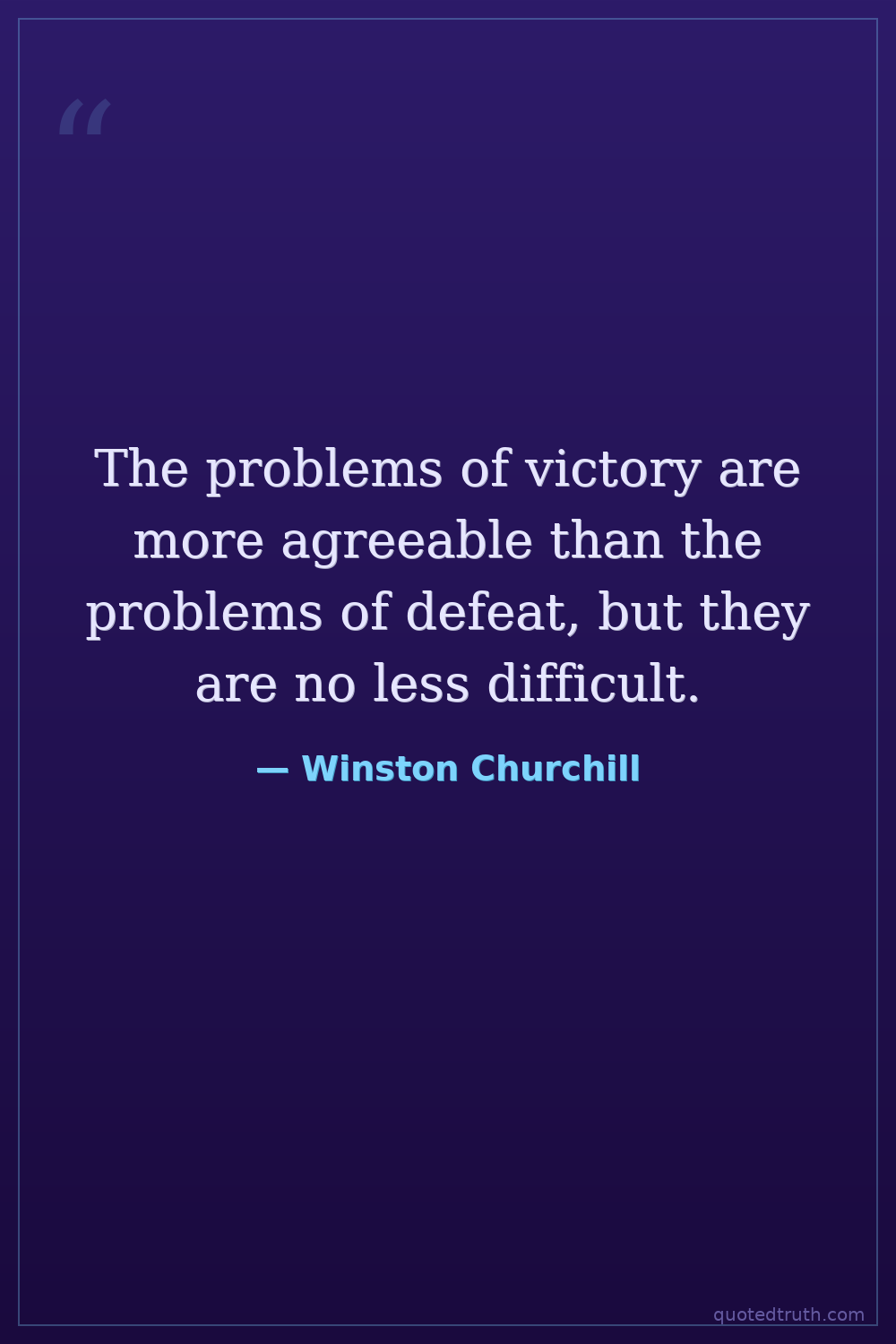 The problems of victory are more agreeable than the problems of defeat, but they are no less difficult.
