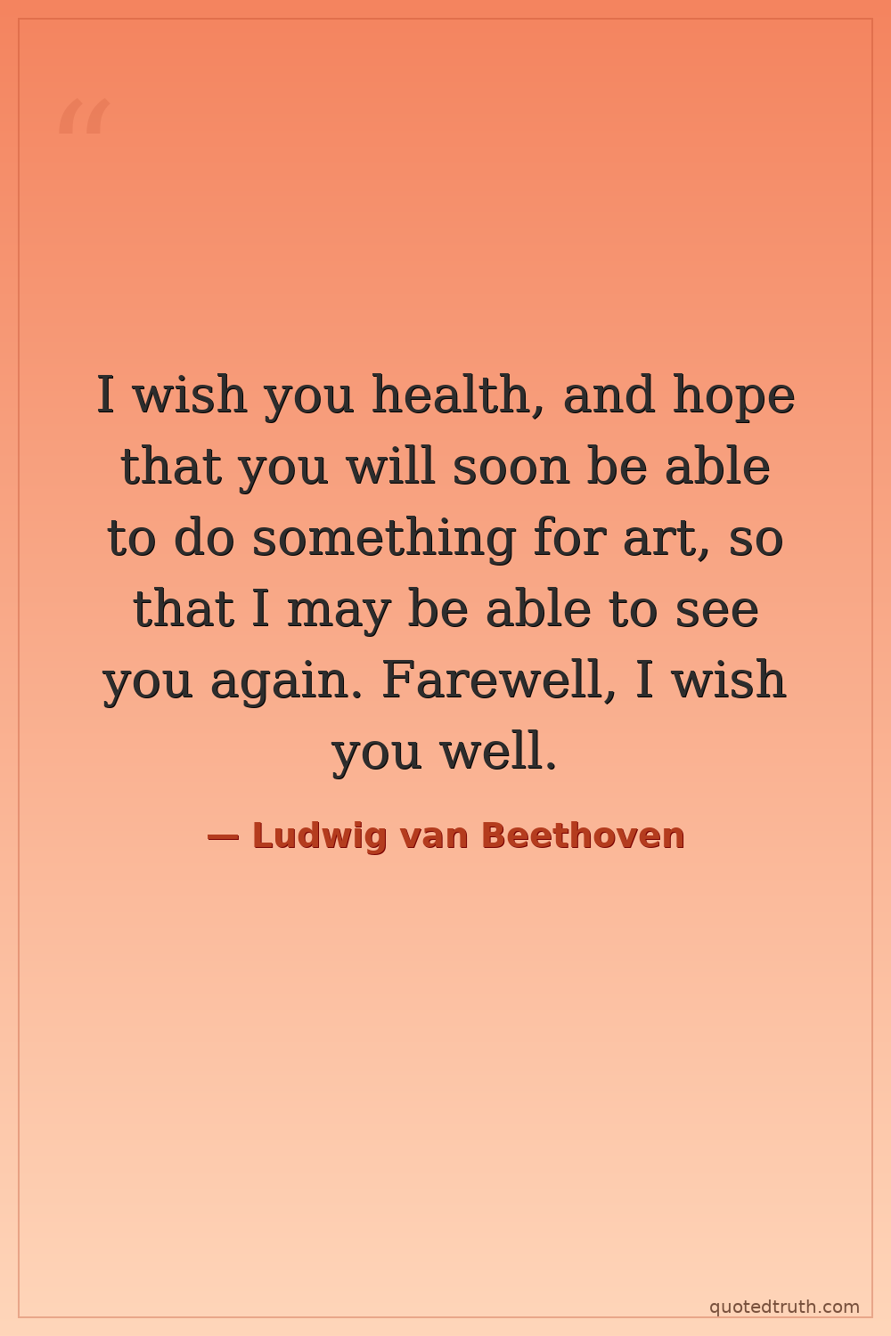 I wish you health, and hope that you will soon be able to do something for art, so that I may be able to see you again. Farewell, I wish you well.