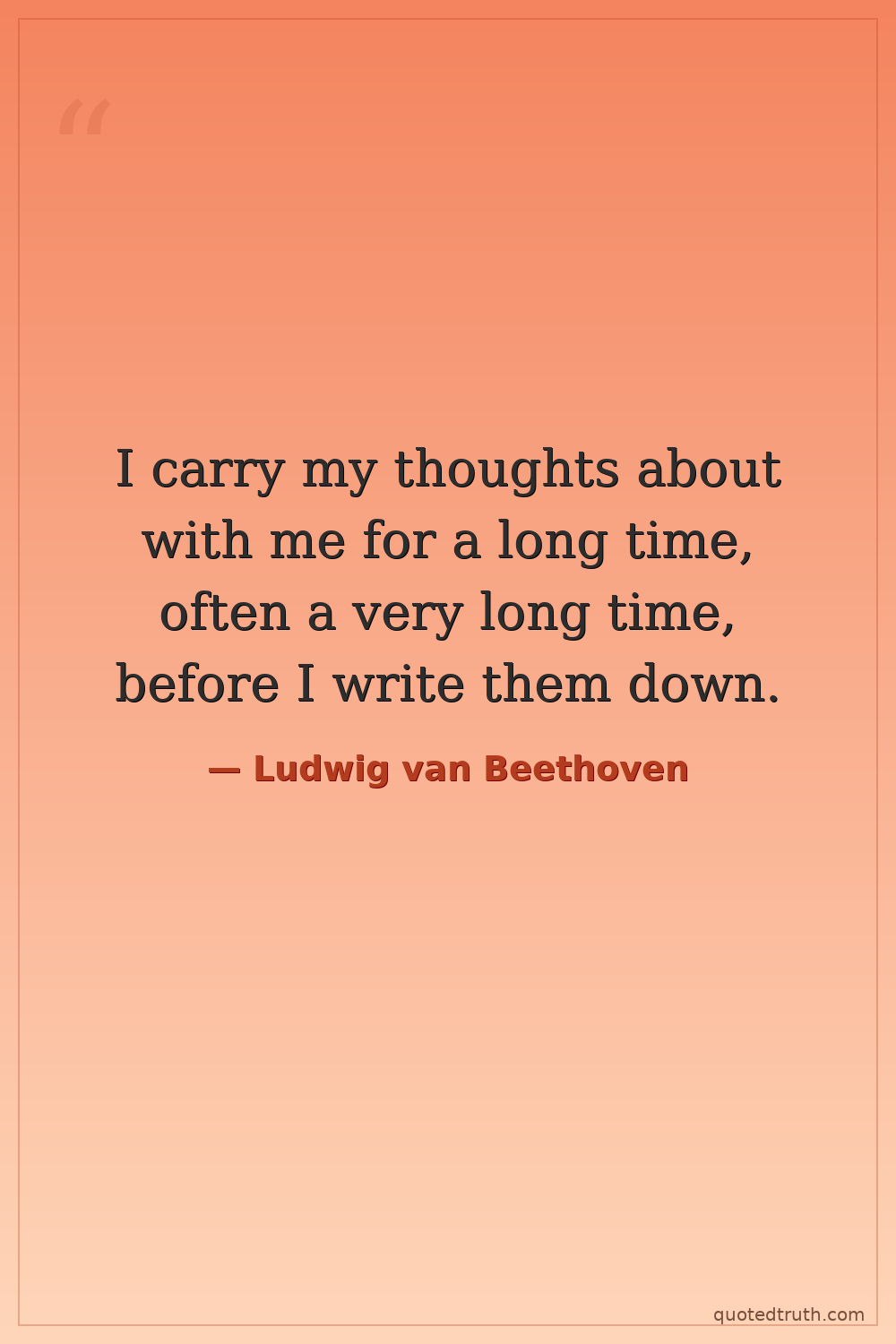 I carry my thoughts about with me for a long time, often a very long time, before I write them down.