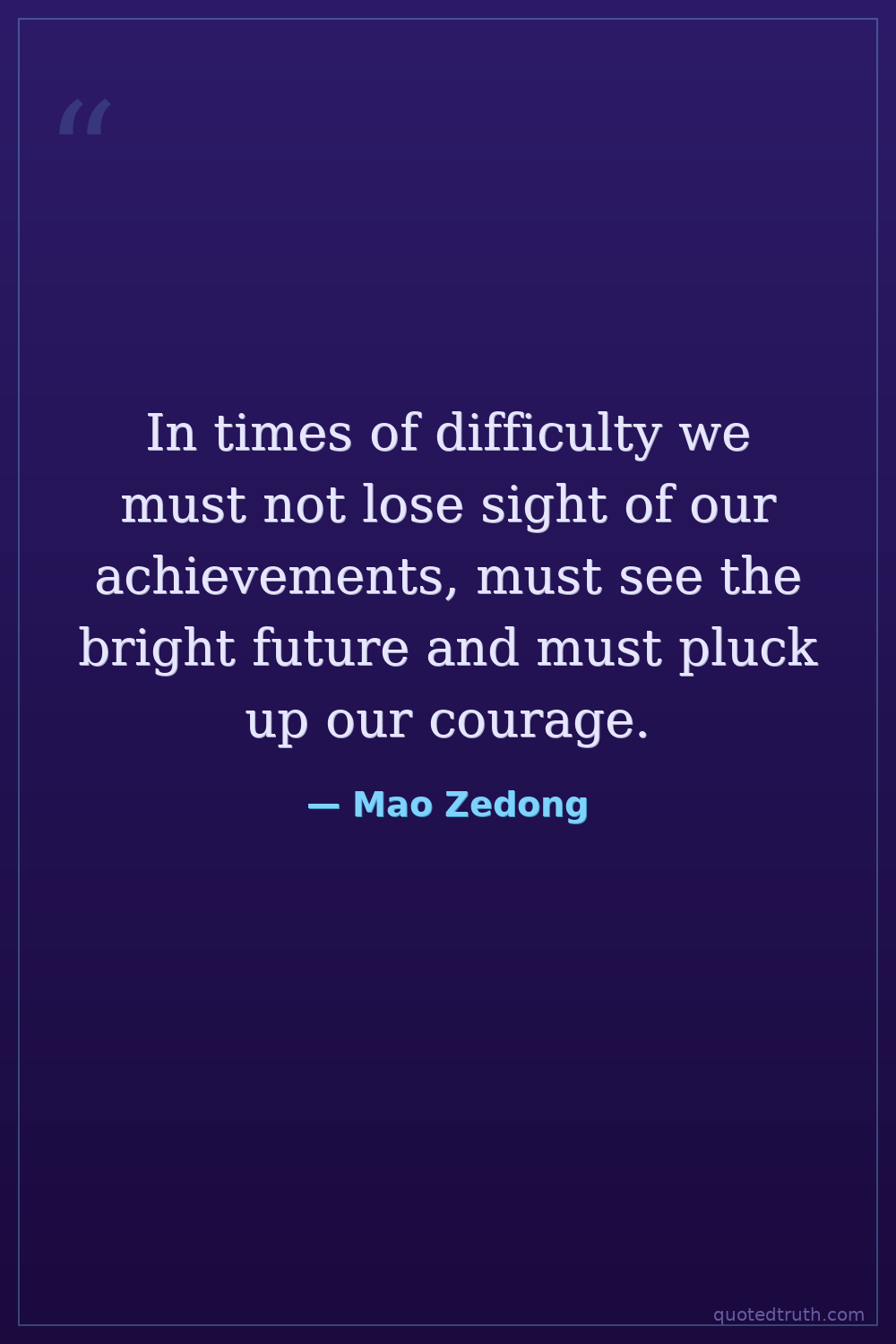 In times of difficulty we must not lose sight of our achievements, must see the bright future and must pluck up our courage.