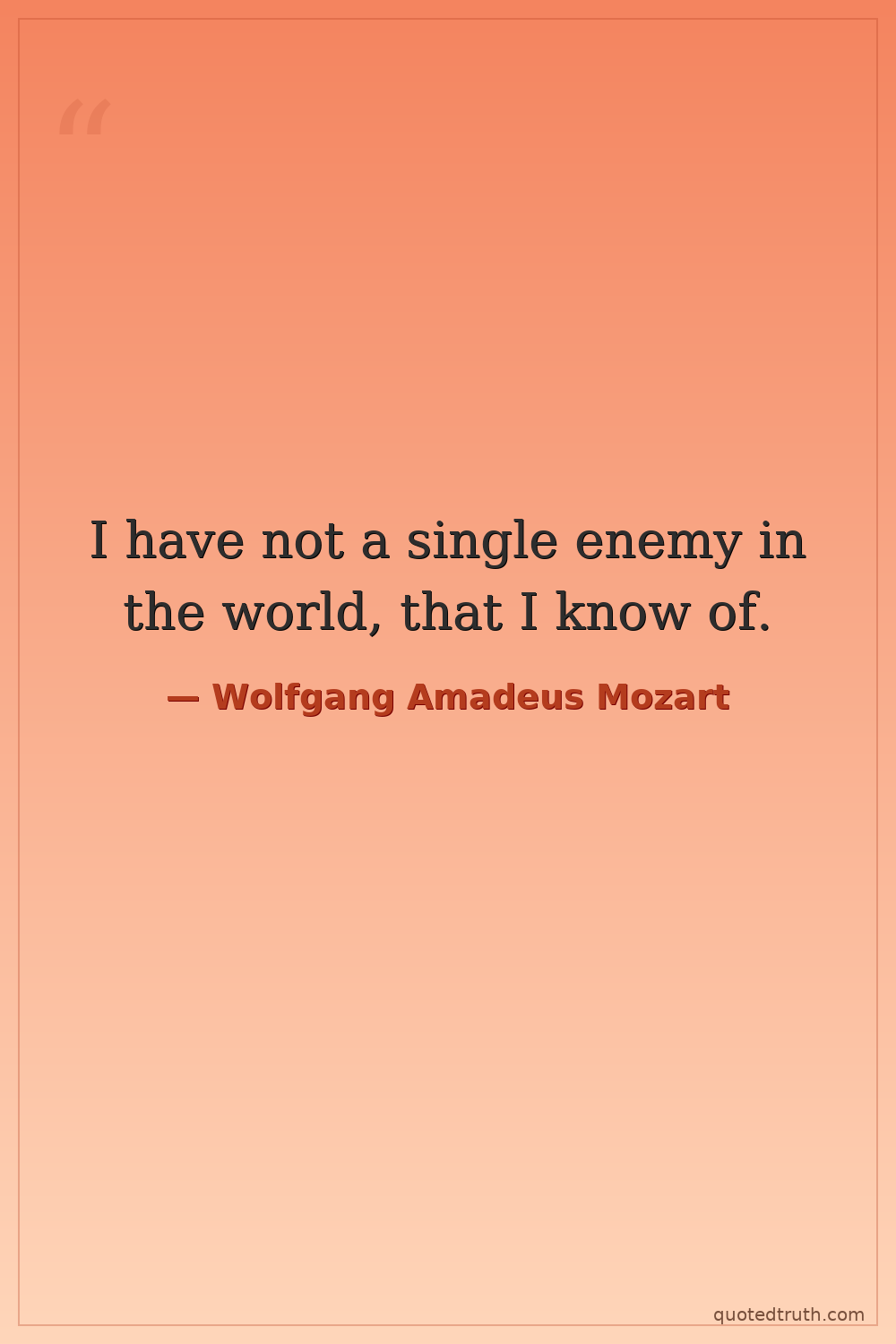 I have not a single enemy in the world, that I know of.