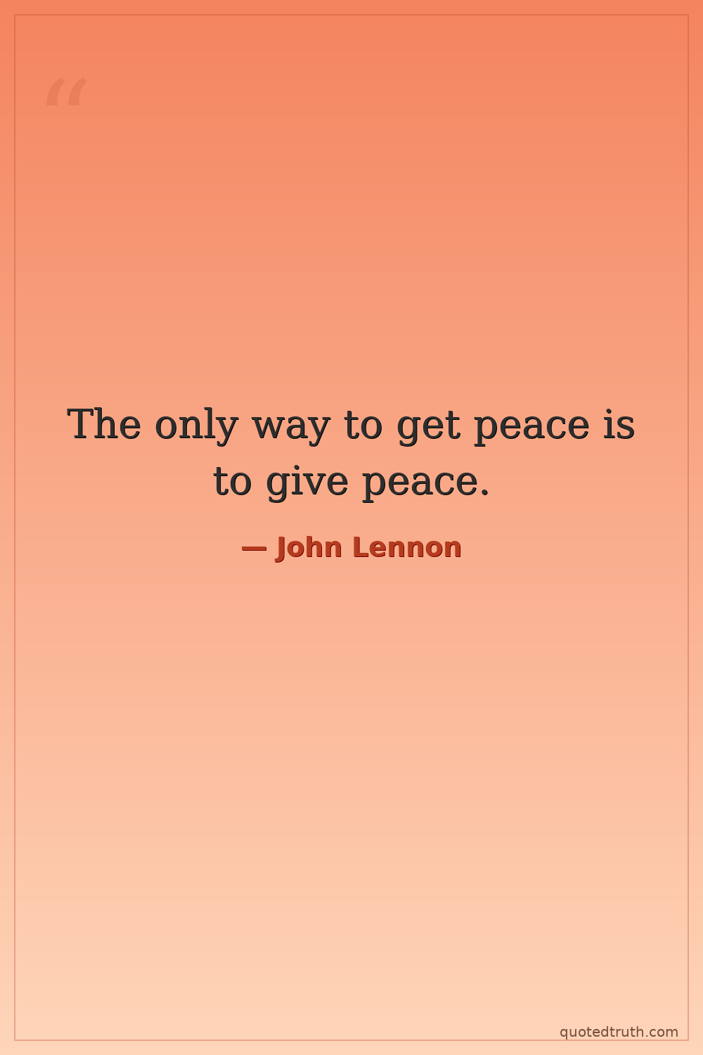 The only way to get peace is to give peace.