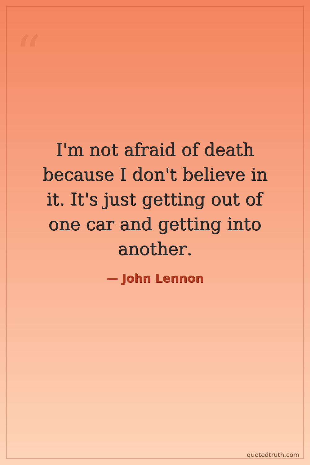 I'm not afraid of death because I don't believe in it. It's just getting out of one car and getting into another.