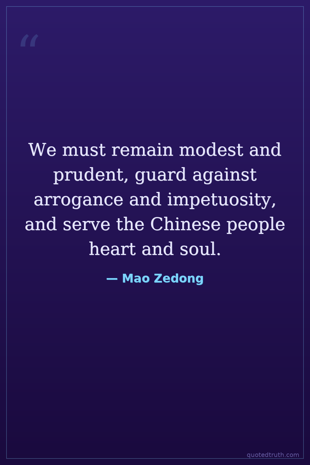 We must remain modest and prudent, guard against arrogance and impetuosity, and serve the Chinese people heart and soul.