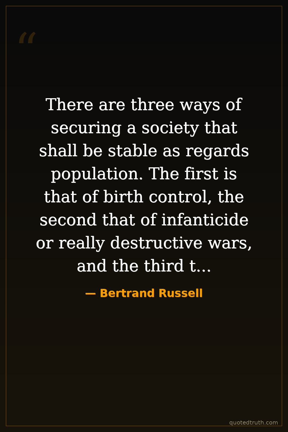 There are three ways of securing a society that shall be stable as regards population. The first is that of birth control, the second that of infanticide or really destructive wars, and the third that of general misery except for a powerful minority.