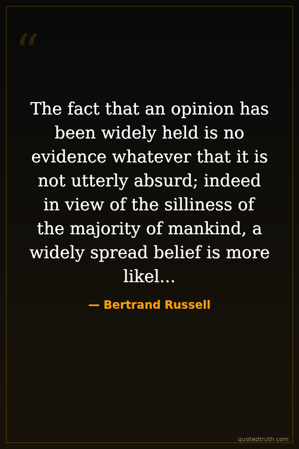 The fact that an opinion has been widely held is no evidence whatever that it is not utterly absurd; indeed in view of the silliness of the majority of mankind, a widely spread belief is more likely to be foolish than sensible.