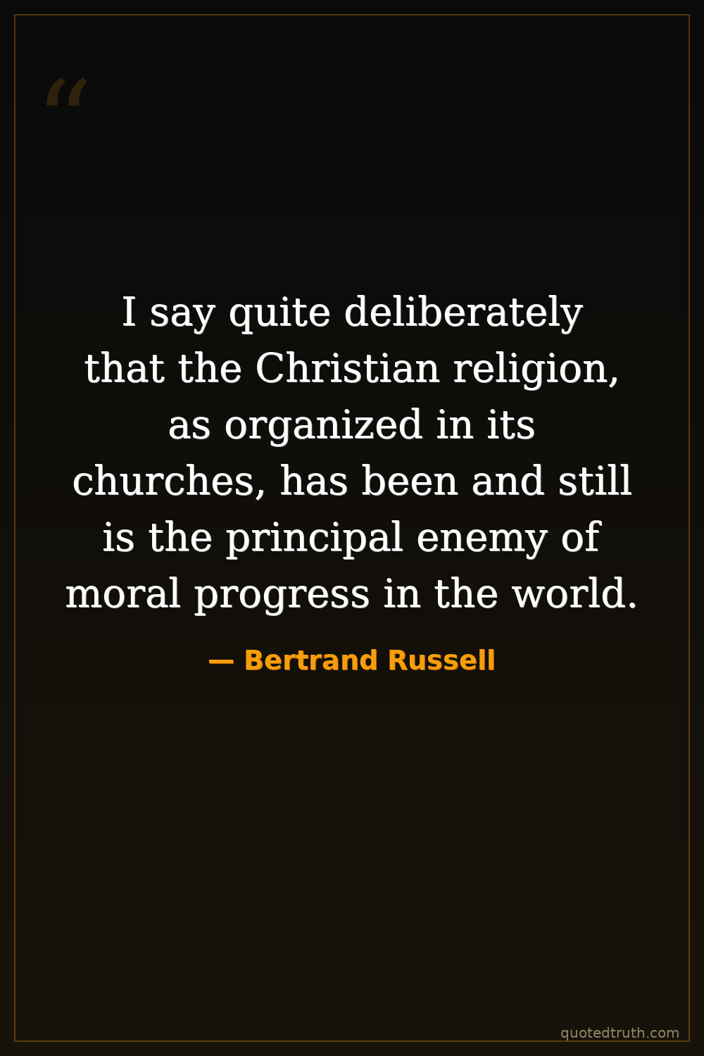 I say quite deliberately that the Christian religion, as organized in its churches, has been and still is the principal enemy of moral progress in the world.