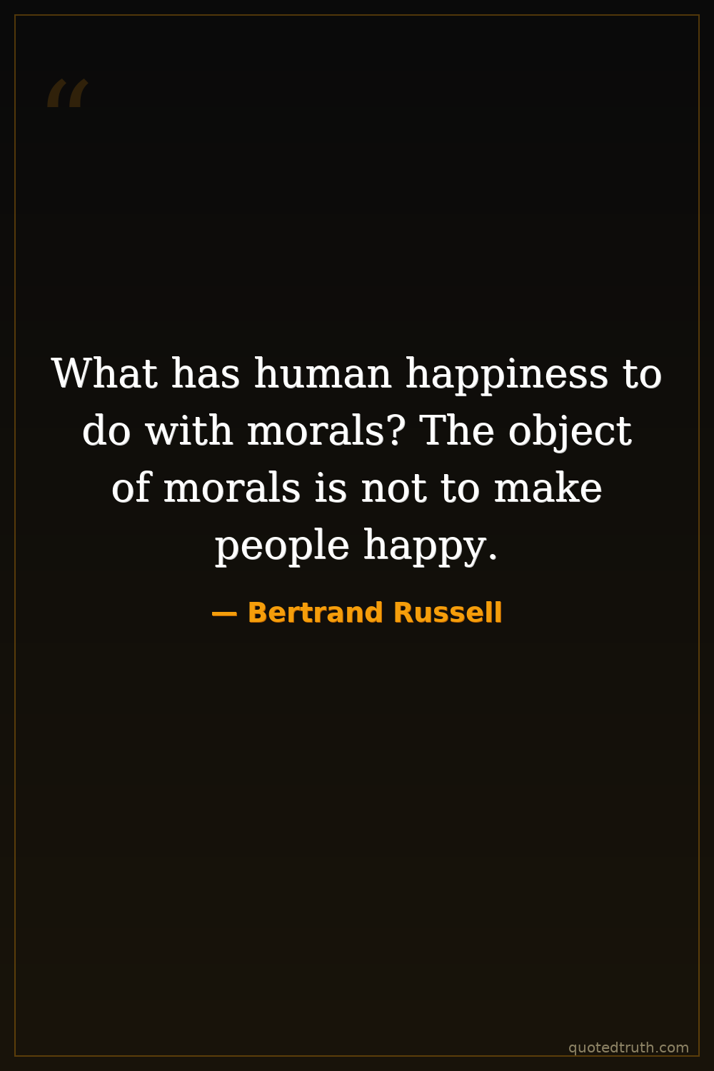 What has human happiness to do with morals? The object of morals is not to make people happy.