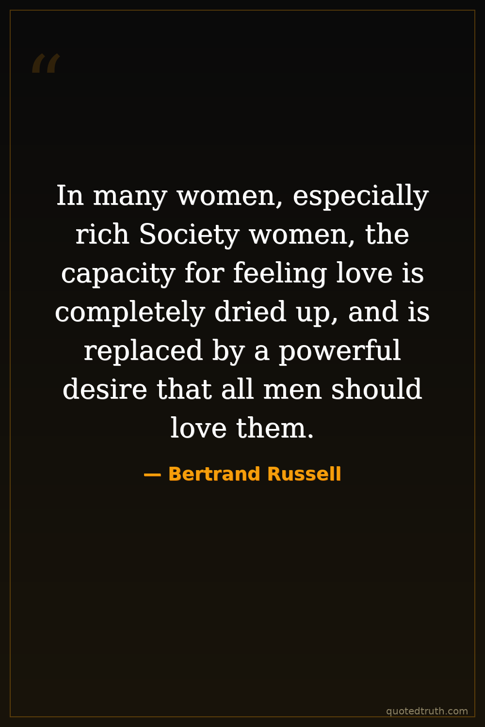 In many women, especially rich Society women, the capacity for feeling love is completely dried up, and is replaced by a powerful desire that all men should love them.